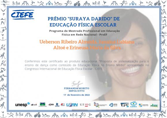 Dos dias 16 à 20 de setembro ocorreu na Universidade Federal do Rio Grande do Norte o XXI Congresso Brasileiro de Ciências do Esporte/VIII Congresso Internacional de Ciências do Esporte organizado pelo Colégio Brasileiro de Ciências do Esporte (CBCE). Ao final do referido evento foi anunciado os ganhadores do "Prêmio CBCE de Literatura Científica, que prestigia os trabalhos que se destacaram em cada um dos 13 grupos de trabalhos temáticos (GTT's) do evento.